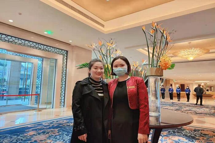 为增进与实习生的沟通交流,了解实习生在企实训情况,加强校企合作,2021年10月21日旅游管理教研室老师张欣然、孙洁、胜佳一行老师前往香格里拉大酒店看望院系实习生。