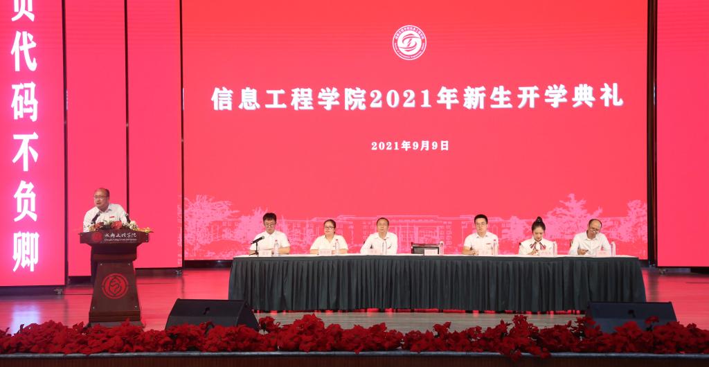 白露至,秋意浓,又是一年丰硕金秋。9月9日中午,信息工程学院举行了2021年新生开学典礼,院长胡念青、党总支书记贾冲、院长助理陈坚、学生工作办公室主任尹隆龙、党总支组织员郭晗昕、教师党支部书记刘刚出席典礼,学院全体教师和745名新生到场参加。