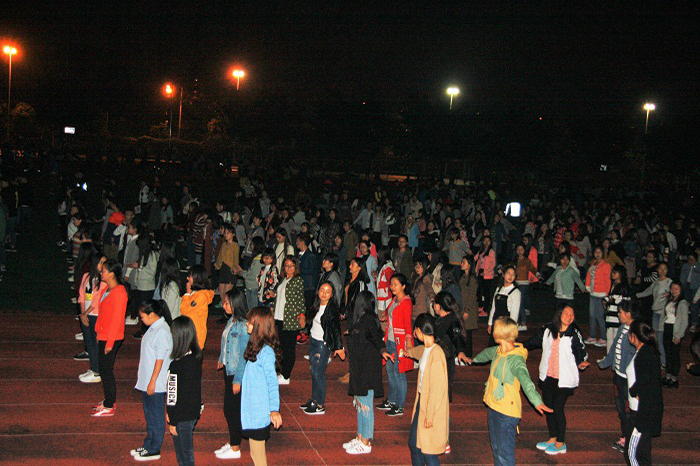 各团体项目都在体育部的指导下积极有序的训练着,尽管训练时间晚、强度大、天气寒冷,同学们仍然坚持训练。此次参加运动会方阵的同学全部来自大一,刚刚结束军训的他们,踏着整齐的步伐,展现了我院新生学子的青春朝气,阳光活泼,冰冷刺骨的寒风无法阻挡青春的活力热血。训练中最为复杂,最有难度的当属团体操项目。来自大二的学长、学姐们不论风雨都坚持训练。团体操项目要求同学们动作规范整齐,而且动作很多,且需要动作与音乐完美结合,一次次的旋转、蹲下、拉手,都是为了完成最终的精彩表演。
