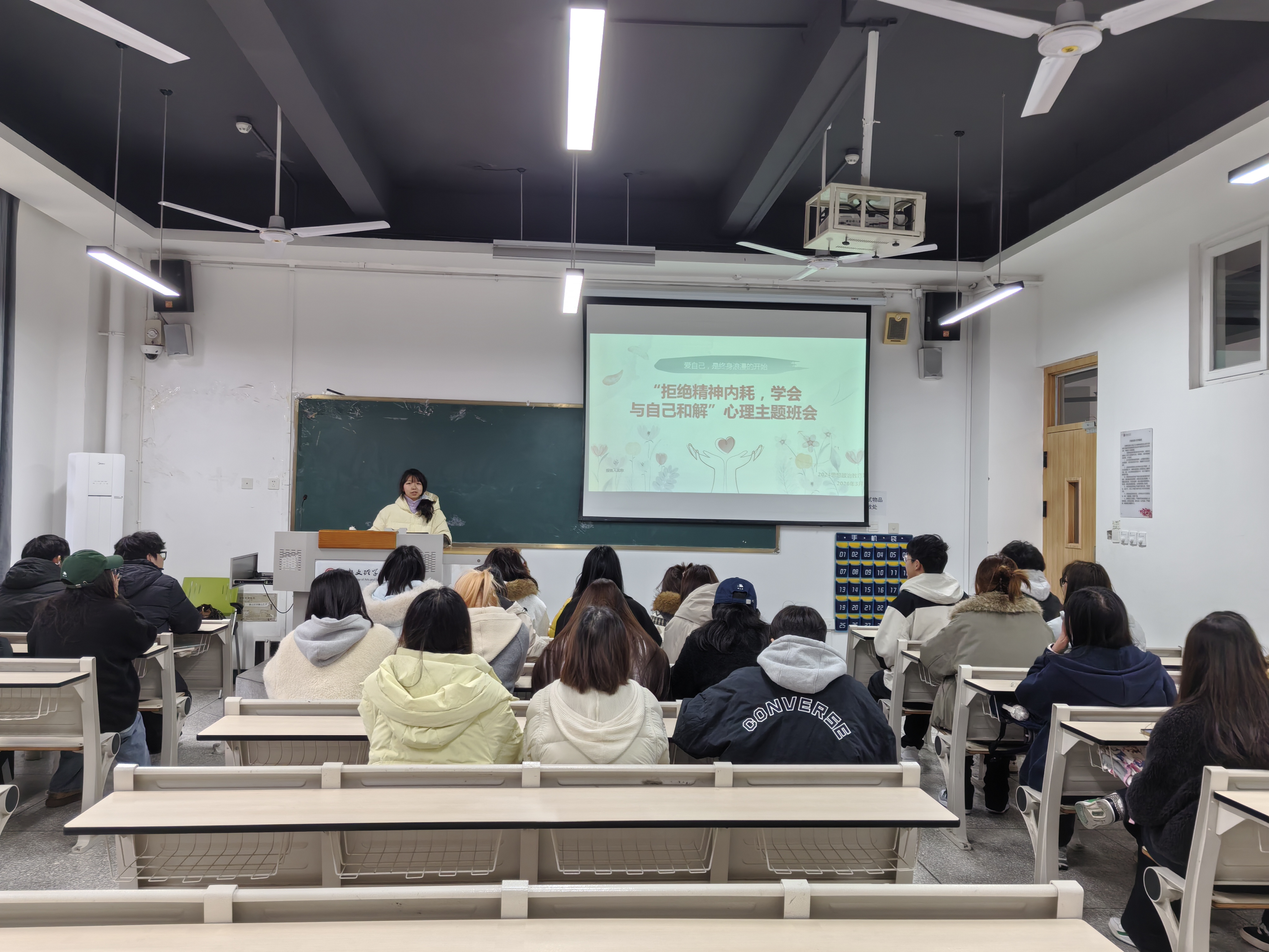 为帮助同学们更好地调节情绪、接纳自我,营造温暖包容的班级氛围,3月10日至19日,马克思主义学院各班开展“善爱我”心理主题班会。各班心理委员主持班会,以“接纳不完美,好好爱自己”为主线,通过丰富多样的互动形式,引导同学们关注自身心理健康。